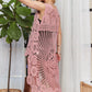 The Crochet Hi-Low Tunic Top is a chic and elegant piece that combines bohemian charm with modern style. The crochet detailing adds a delicate and intricate touch to the tunic, creating a breezy and feminine look. The hi-low hemline adds a contemporary and trendy element to the design, allowing for a flattering and flowy silhouette. This versatile top can be dressed up with tailored pants or dressed down with jeans for a casual yet sophisticated outfit. Perfect for adding a touch of texture and flair to your wardrobe, the Crochet Hi-Low Tunic Top is a stylish choice for various occasions.