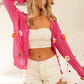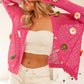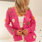 The Flower Patches Open Knit Sweater Cardigan is a charming and feminine piece adorned with delicate flower patches. This cardigan features an open knit design that adds a touch of texture and visual interest. Perfect for layering over outfits, this sweater cardigan adds a cozy and stylish element to any look, making it a versatile wardrobe staple.