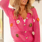 BiBi Flower Patches Open Knit Sweater Cardigan