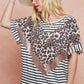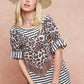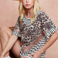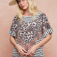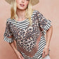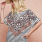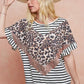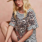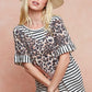 BiBi Stripe Rayon Span Knit Color Block Top With Leopard