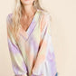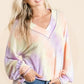 BiBi Tie Dye French Terry V-Neck Top with Puff Sleeves