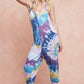 A tie-dye knit mid-length casual jumpsuit is a stylish and comfortable one-piece garment that combines the fun and vibrant tie-dye pattern with a cozy knit fabric. The mid-length design offers a versatile and relaxed fit, making it suitable for various body types and occasions. The tie-dye print adds a playful and bohemian touch to the jumpsuit, creating a bold and eye-catching look. The knit fabric provides softness and stretch, ensuring comfort and ease of movement. This casual jumpsuit is perfect for laid-back and everyday wear, offering a fashionable and effortless outfit option. Pair it with sneakers or sandals for a relaxed look, or dress it up with heels and accessories for a more stylish ensemble. Overall, a tie-dye knit mid-length casual jumpsuit is a trendy and comfortable choice for a chic and easy-to-style outfit.