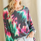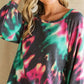 This fashion tie-dye sweatshirt features a stunning blend of blue, pink, and green hues in a unique pattern. Made from soft, comfortable fabric perfect for casual wear. The design includes fashionable balloon sleeves with elastic cuffs, a flattering scoop neckline, and a relaxed fit that provides both style and comfort. The tie-dye pattern makes each piece uniquely different, while the premium quality material ensures durability and maintains its vibrant colors through washing. Ideal for both lounging and casual outings, this sweatshirt can be easily styled with various bottoms for a contemporary bohemian look.