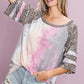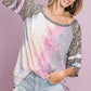 BiBi Tiedye French Terry with Leopard Sleeve Top