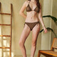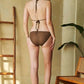 This elegant three-piece swim set features a stunning metallic brown finish with sophisticated shimmer effect. The set includes a triangle bikini top with adjustable ties, matching bottom, and a coordinating wrap skirt with feminine ruffle detail. Made from high-quality stretchy swim fabric that offers both comfort and style. The wrap skirt features an asymmetrical hem with romantic ruffle trim that can be adjusted for desired coverage. Perfect for beach parties, resort wear, or poolside lounging. The metallic finish catches the light beautifully while the design provides a flattering fit for various body types.