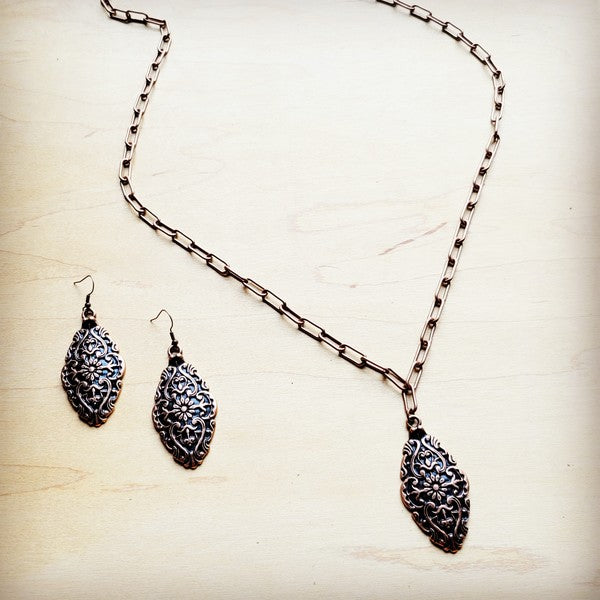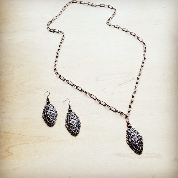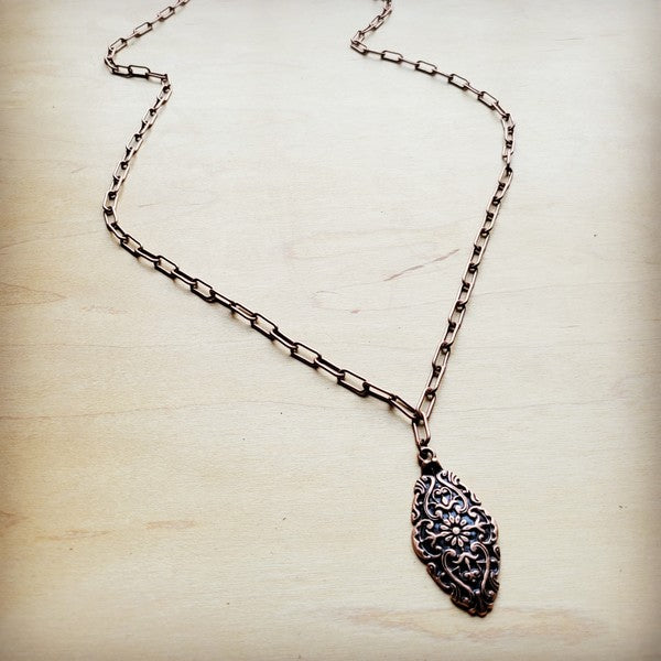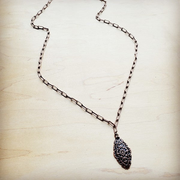 Long Copper Layering Necklace Filigree Pendant