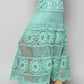 This stunning bohemian-inspired maxi skirt features exquisite crochet lace construction with intricate geometric patterns and floral motifs. Made from lightweight, breathable fabric that drapes beautifully, it showcases multiple tiers of delicate lacework with scalloped edges. The elastic waistband ensures comfortable fit while the flowing silhouette creates an elegant, feminine look. Perfect for festival wear, beach vacations, or casual summer outings, this statement piece combines artisanal craftsmanship with modern boho style. The semi-sheer lace overlay adds texture and visual interest, making it ideal for layering or wearing as a standout piece.