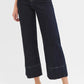 These sophisticated wide-leg cropped jeans combine modern style with classic denim appeal. Crafted from premium stretch denim in a versatile dark wash, featuring a flattering high-rise waist and wide-leg silhouette that creates an elegant, lengthening effect. The cropped length with wide cuff detail adds contemporary flair, while traditional contrast stitching and 5-pocket construction maintain classic jean elements. Perfect for both casual and semi-formal occasions, these jeans offer excellent comfort and style versatility.