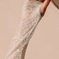This elegant sheer lace top features a delicate bow ribbon pattern for a feminine touch. The lace material adds a romantic and sophisticated element to any outfit. Perfect for layering or wearing on its own, this top is versatile and stylish. Elevate your look with this beautiful lace piece.
