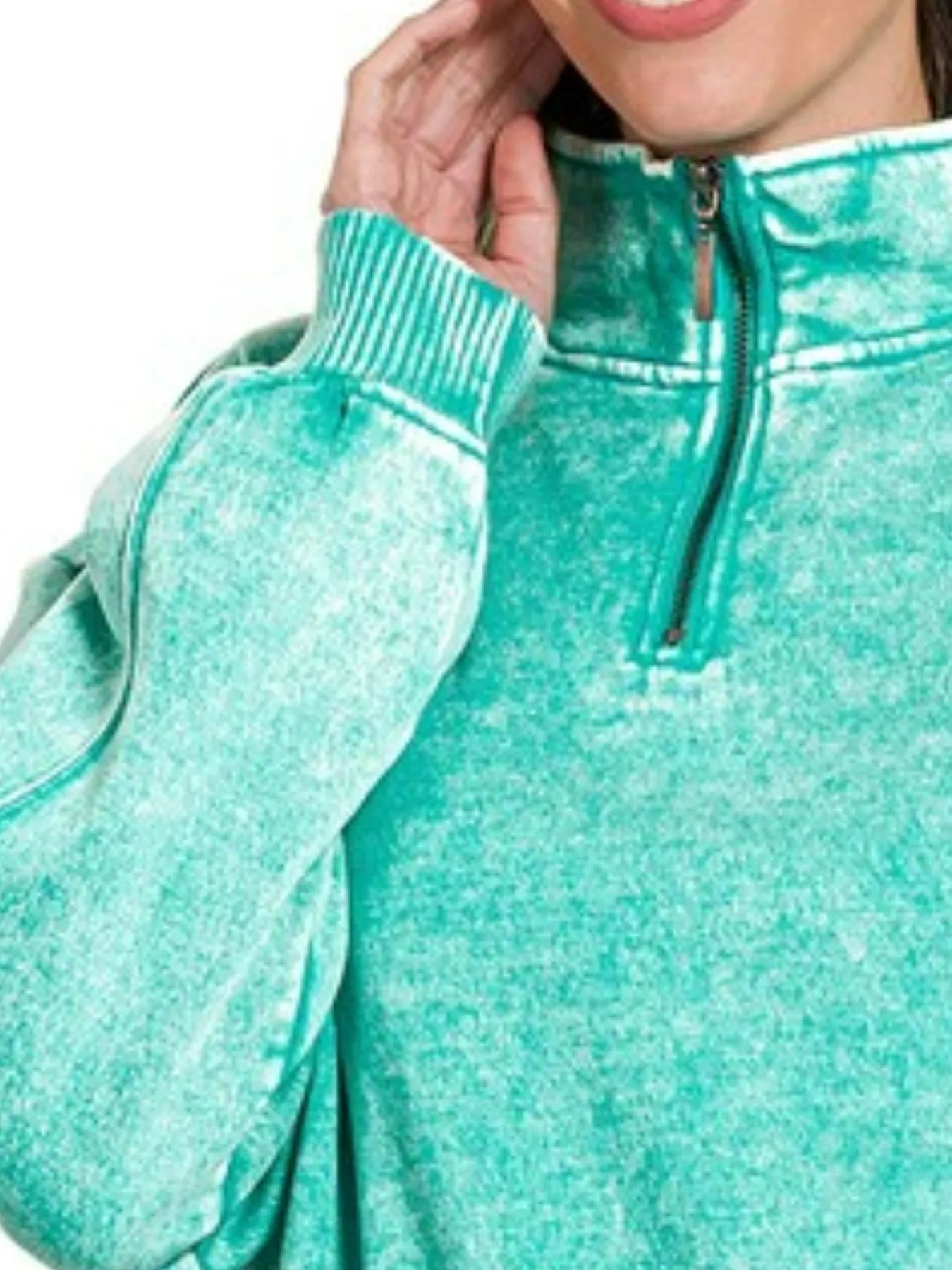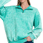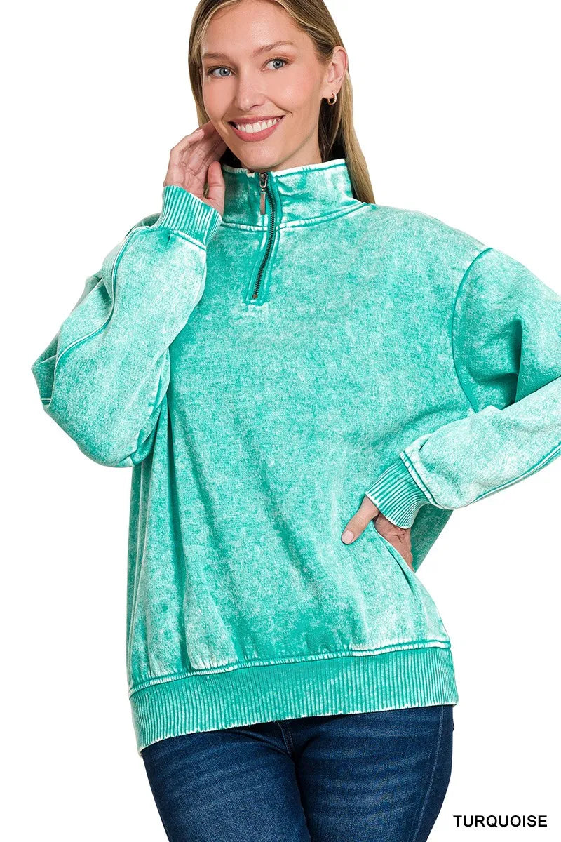 Zenana Acid Wash Fleece Quarter Zip Sweatshirt
