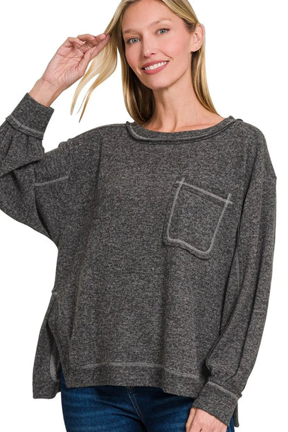 Zenana Brushed Hacci Hi-low Round Neck Knit Top