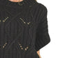 This fashion cable knit pullover sweater features a sophisticated black color with intricate cable knit patterns and decorative openwork details. Made from soft breathable knit fabric, it offers a relaxed comfortable fit with short sleeves and crew neckline. The versatile design makes it perfect for casual wear, layering, and transitional seasons. High-quality construction ensures durability and easy maintenance while the classic cable knit texture adds visual interest and timeless appeal.