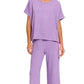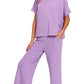 This comfortable two-piece lounge set features a relaxed-fit short sleeve top paired with matching wide-leg pants in a beautiful lavender heathered fabric. Made from soft, breathable material that's perfect for lounging, sleeping, or casual wear. The coordinated set offers effortless style with maximum comfort, featuring a loose, flowing silhouette that flatters all body types. Easy care fabric maintains its shape and color wash after wash. Ideal for home relaxation, weekend wear, or comfortable travel outfits.