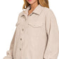 Zenana Distressed Corduroy Frayed Hem Cropped Jacket