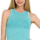 This fashion ribbed knit tank top features a sophisticated high neckline and sleeveless racerback design. Crafted from premium stretch cotton-blend fabric with vertical ribbing texture, it offers exceptional comfort and flexibility. The refreshing mint blue color adds a pop of freshness to any outfit. Perfect for layering under blazers or cardigans, or wearing solo with jeans or skirts. The form-fitting silhouette accentuates your curves while maintaining modesty with its crew neck design. Ideal for spring and summer wardrobes, this versatile piece transitions seamlessly from casual daywear to evening outings.