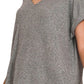 This classic V-neck t-shirt features a comfortable heathered blue fabric that's perfect for casual everyday wear. Made from a soft, breathable knit material that offers natural stretch and durability. The relaxed silhouette with dropped shoulders and rolled sleeves creates an effortlessly stylish look. The v-neckline adds a feminine touch while the high-low hem provides extra coverage. Easy to care for and maintain, this versatile piece pairs well with jeans, shorts, or skirts for multiple styling options.