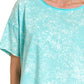 This stylish mineral wash t-shirt features a fashion cropped silhouette in a refreshing mint color. Made from a soft cotton blend material that ensures breathability and comfort. The unique mineral wash treatment creates an eye-catching texture and pattern that adds visual interest. The relaxed fit and round neckline make it perfect for casual wear, while the cropped length adds a modern touch. Ideal for pairing with high-waisted jeans, shorts, or skirts. The short sleeves and lightweight fabric make it an excellent choice for warm weather.